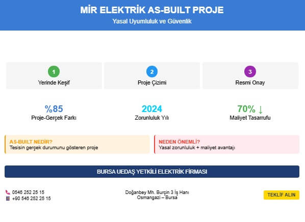 Mevcut bir yapıda yapılan her türlü mimari değişiklik, beraberinde elektrik yük dağılımının ve tesisat güzergahlarının da değişmesini getirir. Bursa Elektrik Tadilat ve Revizyon Projeleri, yapılan bu değişikliklerin yasal mevzuata uygun şekilde projelendirilmesi ve resmi makamlara bildirilmesi sürecidir. 2007’den beri Bursa sanayisine ve ticari işletmelerine hizmet veren Mir Elektrik, tadilat süreçlerinizin yasal ve teknik ayağını profesyonelce yönetir.